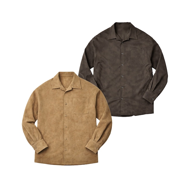 【オーダー受注商品】 ※ご注文後、約3〜4週間前後でのお渡しとなります。 〜一枚で成立し、軽く羽織っても整う〜 東レが開発した高機能素材『ウルトラスエード®』を使用。本革のような奥行きある質感を持ちながら、軽く扱いやすい素材です。 本モデルは、サロンが推奨するスタイリングやニュアンス感を、より気軽に体験できるプロダクト。価格帯は抑えめに設定しながらも、仕立ての精度と雰囲気はそのままに。 一枚羽織るだけで、装いの印象が自然と整い、完成度が引き上がります。 MTM(Made to Measure)対応により、肩幅・着丈・身幅などを出来寸で調整可能。 既製品では難しいバランスを、具体的な数値で実現します。 伸縮性と柔らかな肌あたりで着心地も快適。 シャツとしても軽い羽織としても使える設計で、秋・冬・春の3シーズン活躍します。 着る回数が増えるほど価値を実感できる、ワードローブの軸となる一着です。 カラー展開 ・GINGER(ジンジャー) ・BLACK OLIVE(ブラックオリーブ) 素材:人工皮革100% 目付け:220g 洗濯表示:専門クリーニング サイズについて 本商品はMTM(Made to Measure)対応モデルです。 下記は参考ベースサイズとなります。 XS/ S / M / L / XL/ XXL ※上記を基準に、 着丈・身幅・肩幅・袖丈など各寸法を ±◯cmの範囲で出来寸指定が可能です。 ご希望のシルエットに合わせて調整いたします。 仕様について ボタン色:当社指定の色になります。(※画像参照)