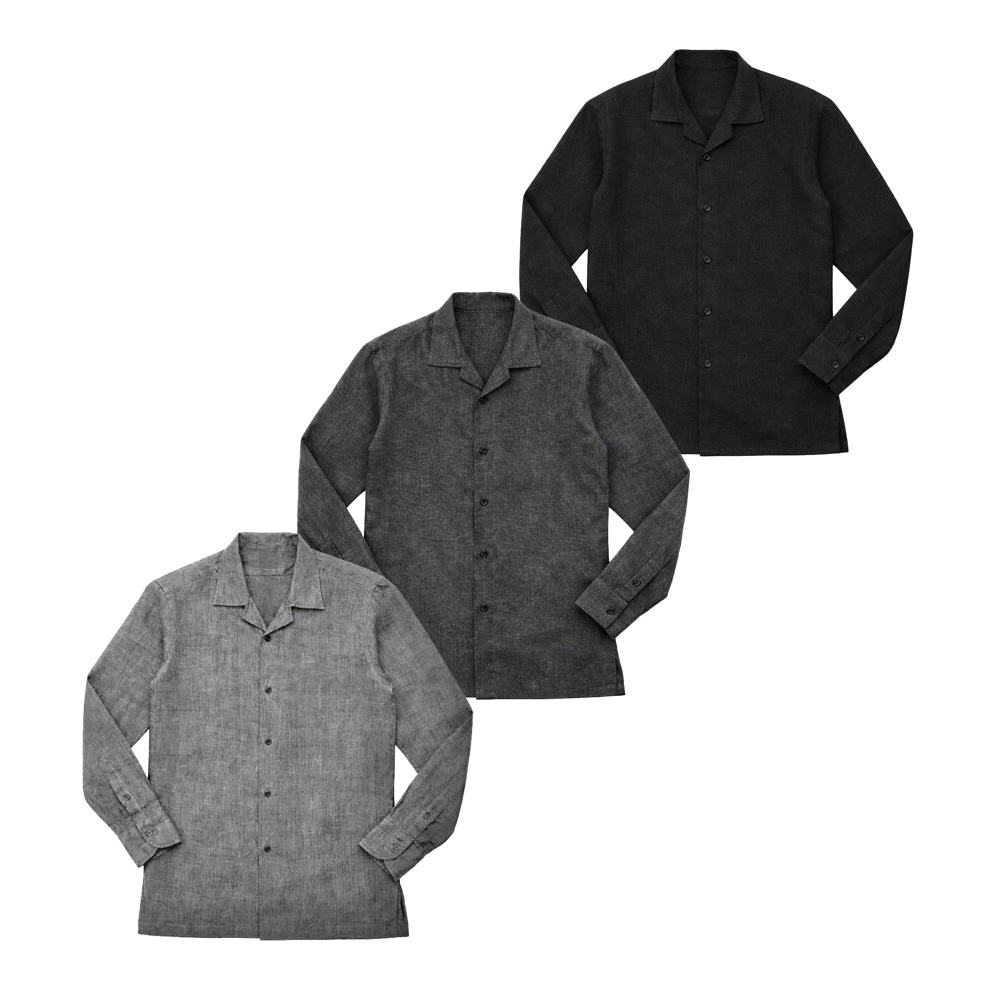 軽くて涼しいリネン素材に、ラフすぎずきちんと見えるオープンカラーを組み合わせることで、1枚でもインナーとしても使える汎用性を持たせました。春夏の装いをシンプルに整えられる一着です。