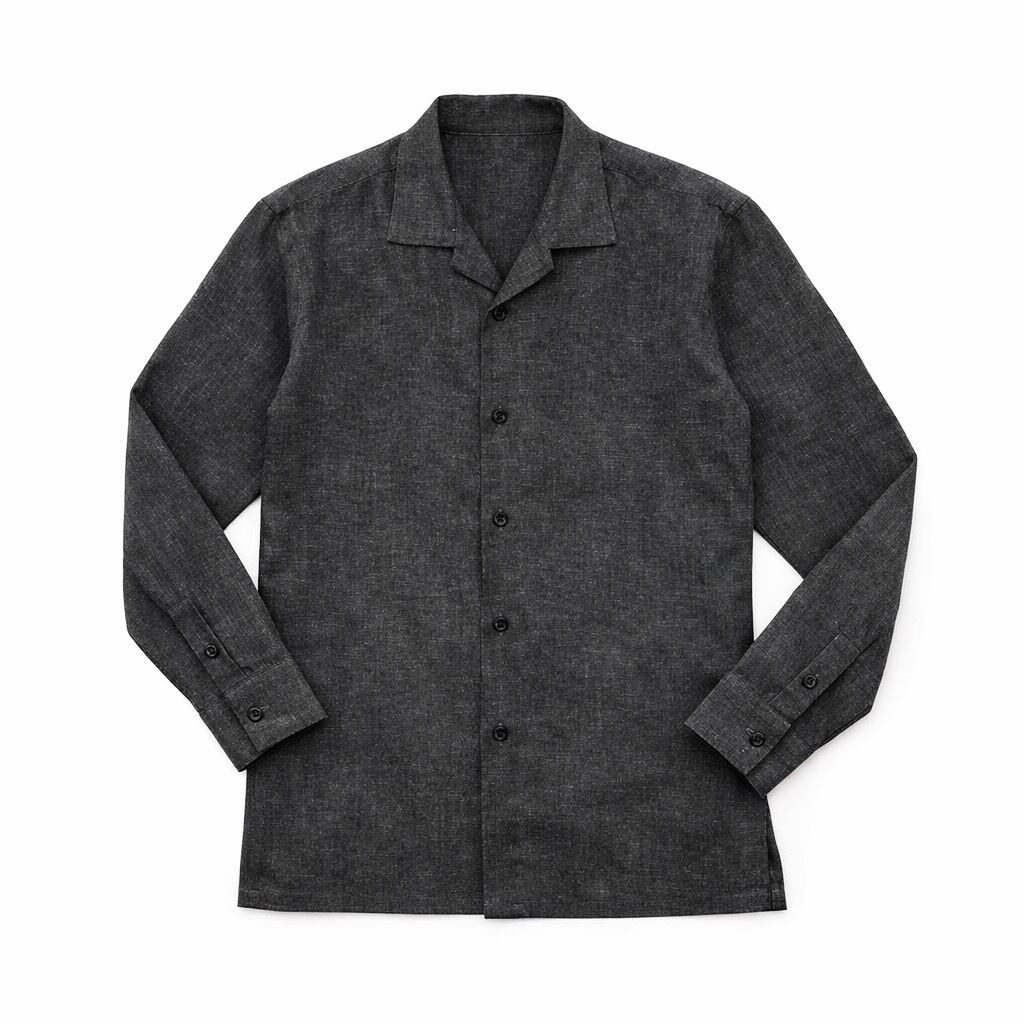 軽さと品を両立する、英国リネンのオープンカラーシャツ